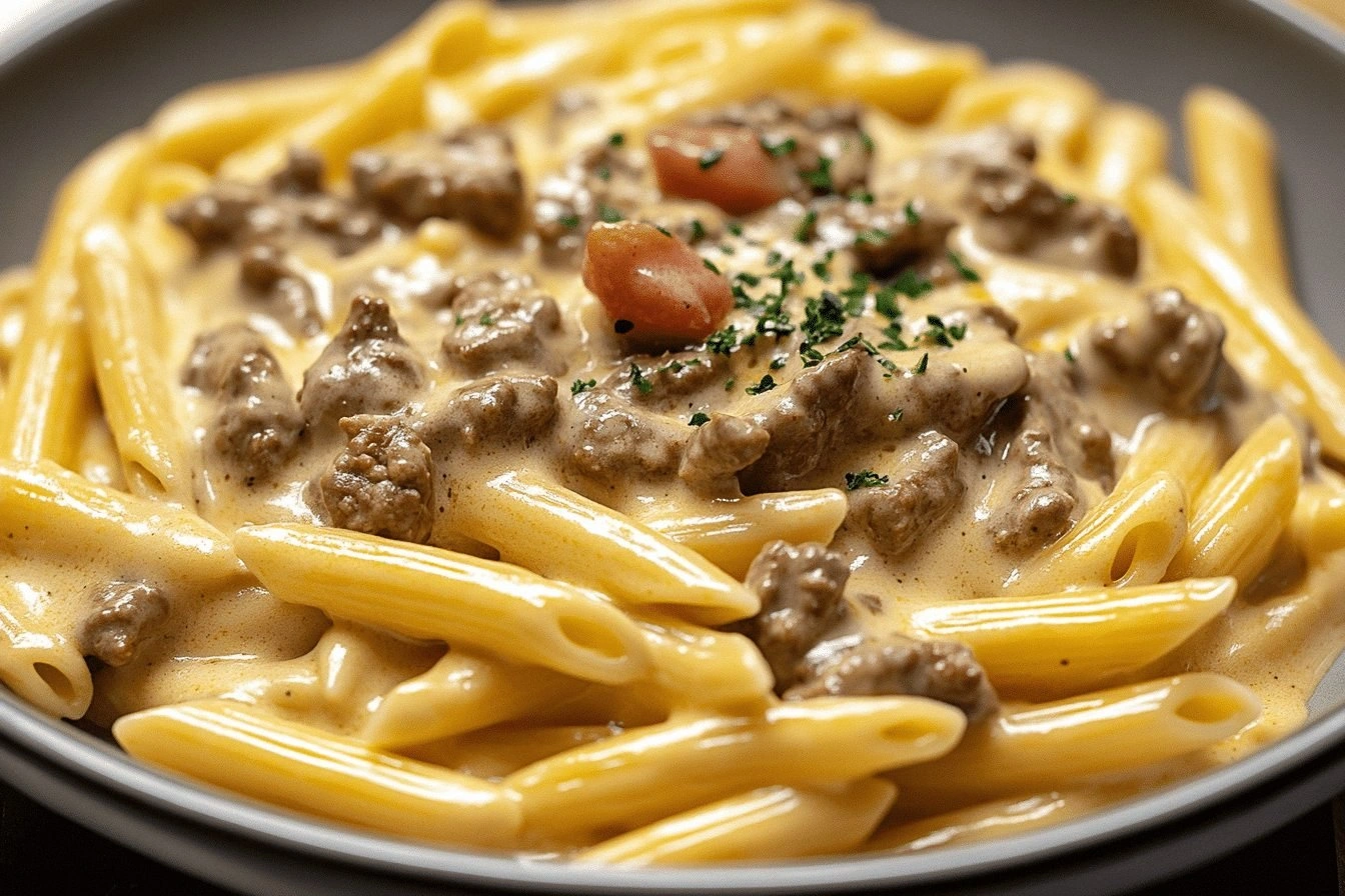 I was halfway through a disastrous week of bland dinners when a friend dared me to turn a cheap ground‑beef bowl into something that would make our taste buds do a double‑take. I grabbed a block of Velveeta, a bag of penne, and a handful of mushrooms, and the kitchen smelled like a cozy, indulgent dream. That night, I tasted the first bite and realized I’d stumbled on a flavor secret that feels like a culinary cheat code. I’m talking about a sauce that coats every noodle like velvet, a beef bite that practically melts in your mouth, and a mushroom finish that brings earthy depth to the whole dish. If you’ve ever felt that your stroganoff was missing a punch, this version is the answer you didn’t know you were looking for.