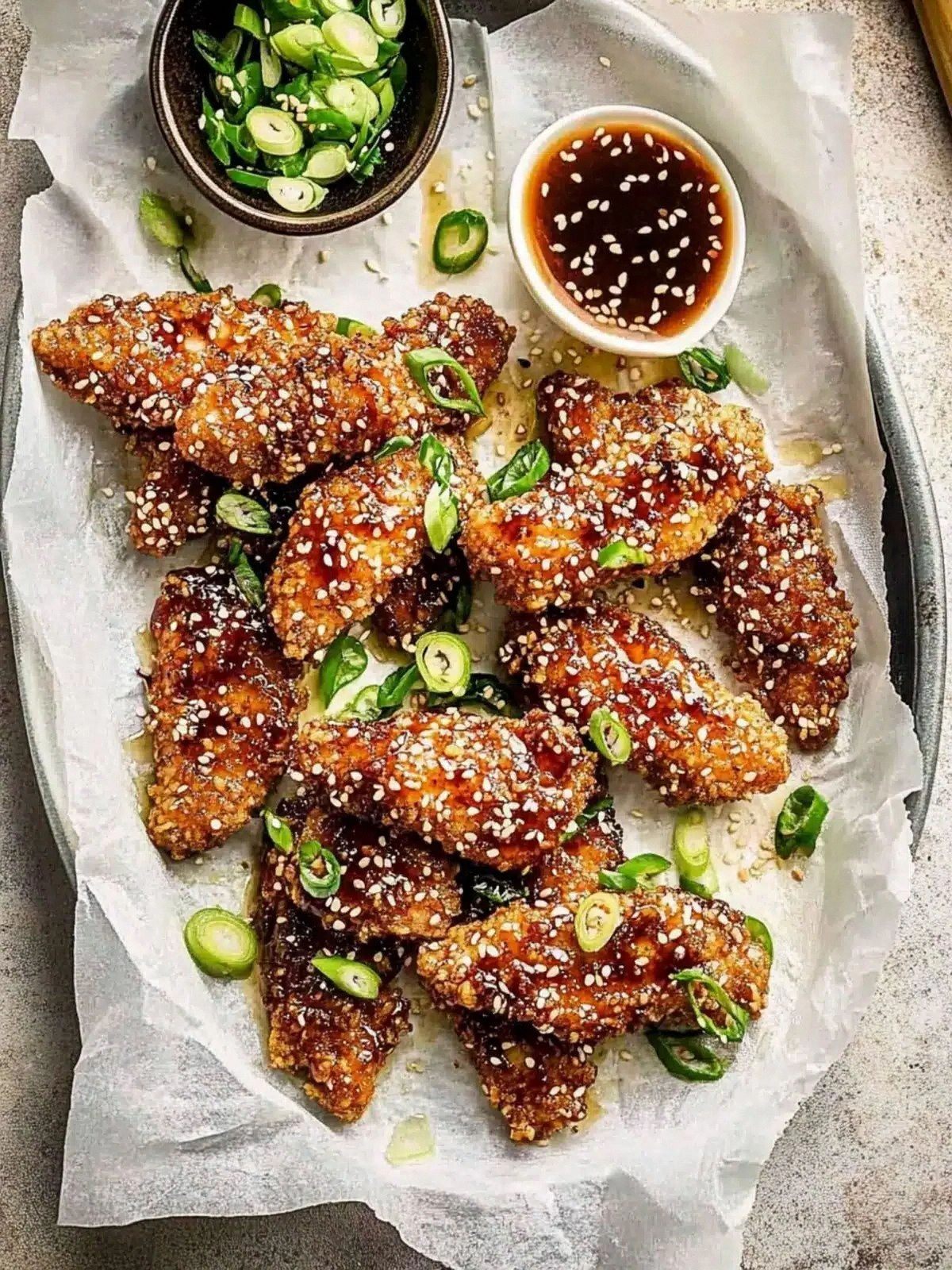 The optional green onions add a fresh, crisp bite that cuts through the richness of the sauce. They’re best added at the very end, just before serving, so they retain their bright color and subtle onion flavor. If you’re looking for a vegan version, simply omit the eggs and use a plant‑based egg replacer; the coating will still stay crisp.