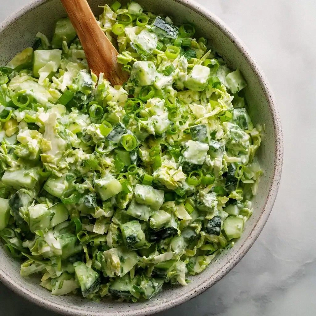 Picture the scene: a bright, sunlit kitchen, the air perfumed with the sharp, clean scent of freshly chopped herbs and the faint tang of lemon zest. The sound of the knife slicing through crisp cabbage echoes like a drumbeat, while the splash of cucumber water creates a gentle, rhythmic patter. Your eyes are drawn to the vivid green hues—emerald cabbage, bright basil, and the pale, almost translucent chives—each leaf glistening with a subtle sheen of olive oil. The texture is a symphony of crunch and softness; the cabbage’s bite gives way to the silky smoothness of the yogurt-based dressing that coats every leaf like velvet. The first bite delivers a burst of citrusy brightness, followed by the savory depth of garlic and the subtle heat of pepper, leaving a lingering, refreshing aftertaste that makes you want to reach for more.